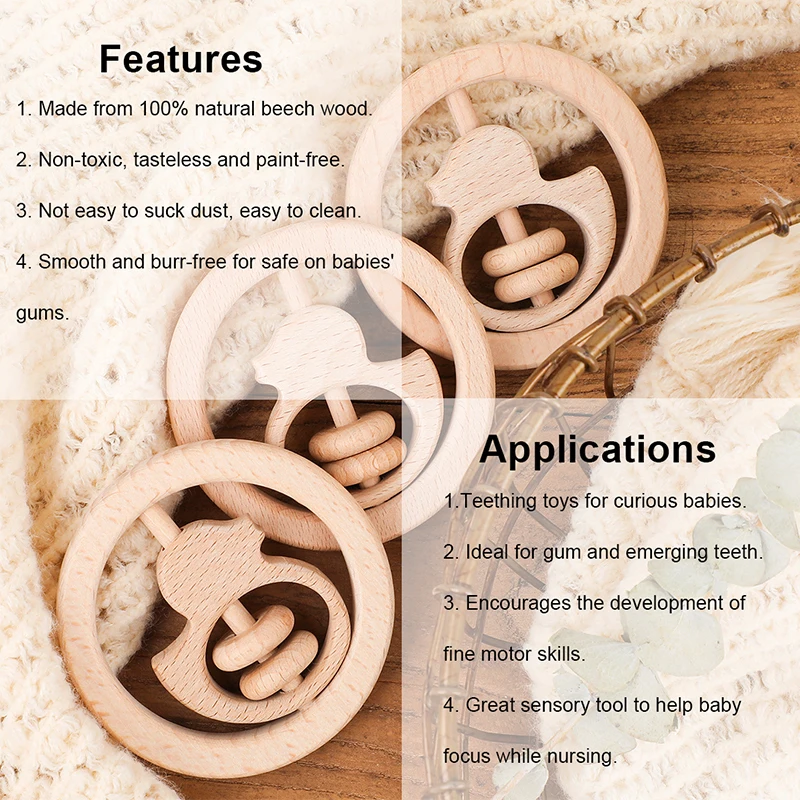 Отзывы о 1 шт. детские игрушки деревянные погремушки в виде животных и птиц модное кольцо