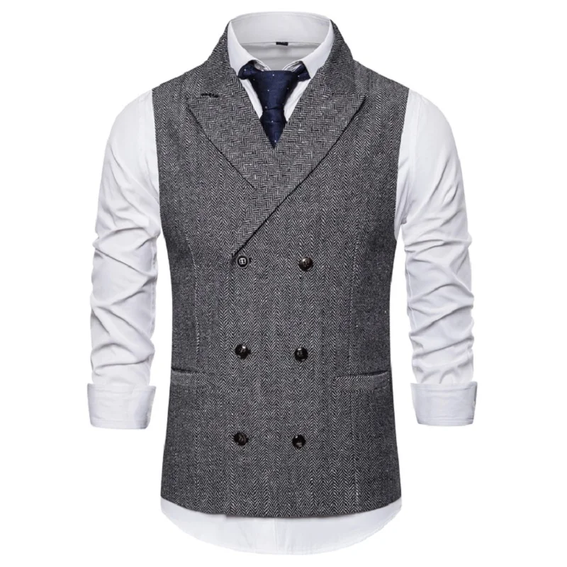 Отзывы о Новый мужской повседневный двубортный жилет в елочку |