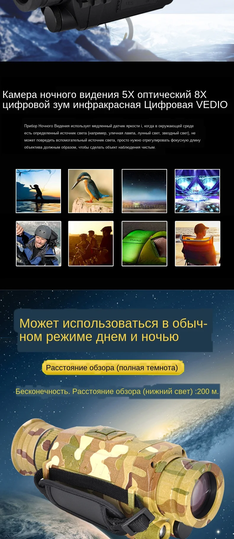 Отзывы о Монокуляр ночного видения 5X40 цифровой с 8G TF-картой охотой ночным видением оптика