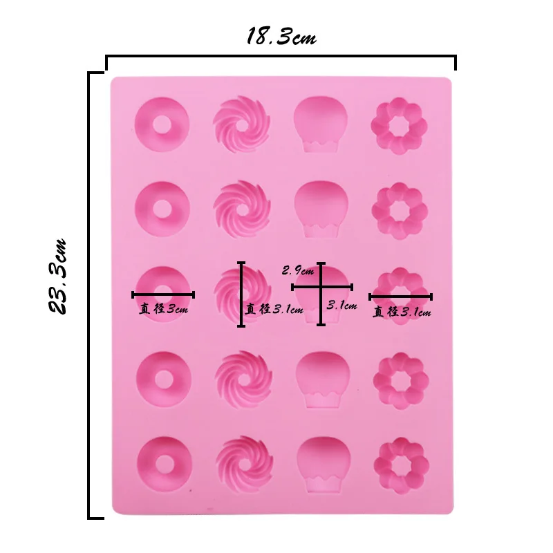 20 полости силиконовые формы для торта 3D мини пончик цветок вихревой шар Кекс желе шоколадные формы инструменты для украшения выпечки, тортаЦвет: СлучайныйМатериал: пищевой силиконРазмер: 23,3*18,3*1,3 см