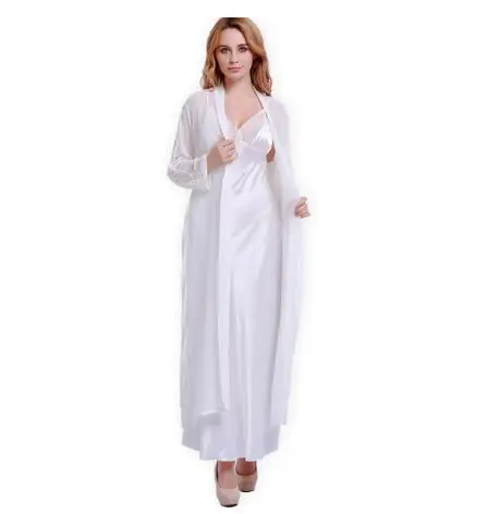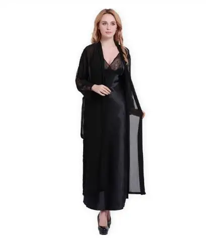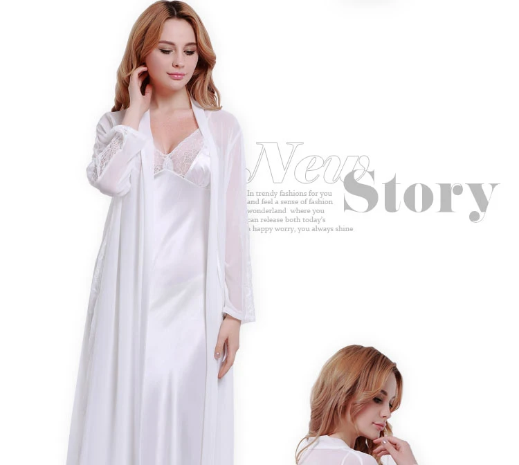 Отзывы о Ночная рубашка женская из двух предметов шелковый халат с кружевом и V-образным