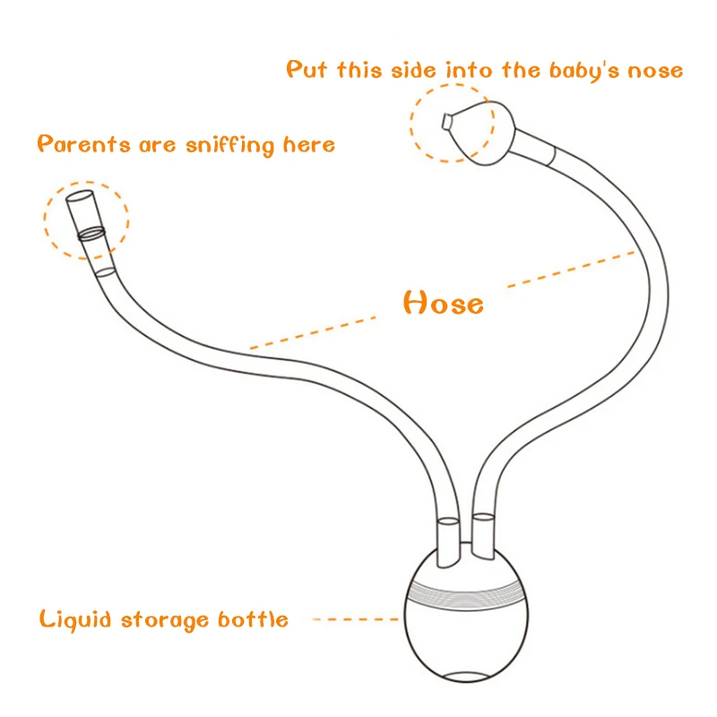 1. Поместите всасывающую трубку в рот, поднимите ребенка, вставьте всасывание 2. Воздушную трубку к подарит Вашему ребенку ноздрей, и медленно сосать нос. 3. Если носовая вода затвердевает и конденсирует, не форсируйте ее. Сначала согрейте нос теплым полотенцем, затем аккуратно промокните носовой водой ребенка.