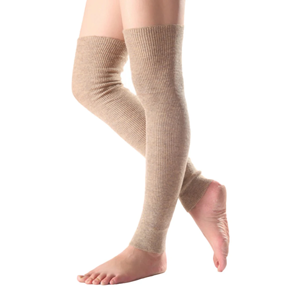 Women Solid Color Knee High Knit Leg Warmers Long Yoga Socks Boot Cuffs Toppers