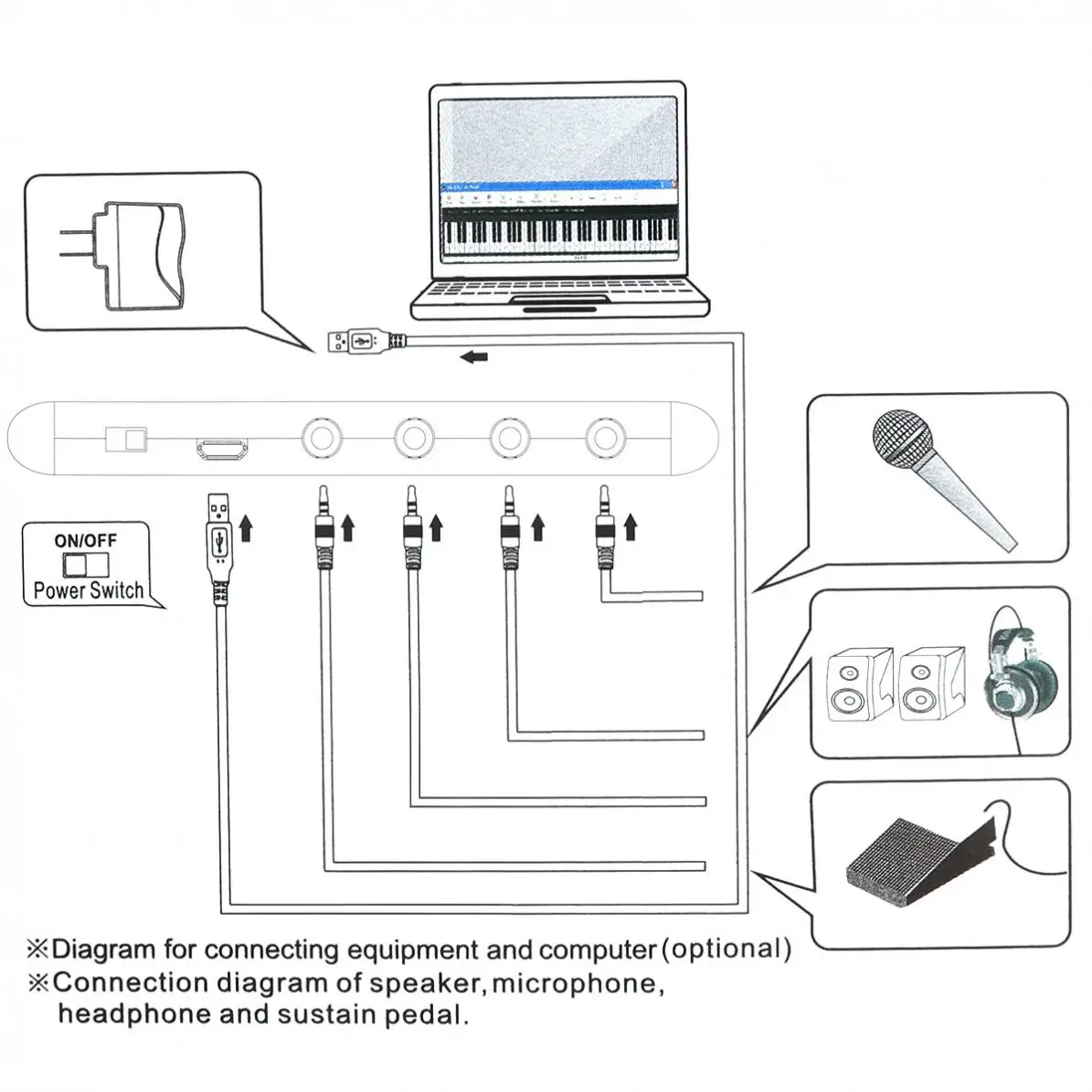 -Поддерживает функцию выхода USB MIDI и оснащен поддерживающими педальными интерфейсами, вы можете легко подключить пианино к компьютеру или планшету