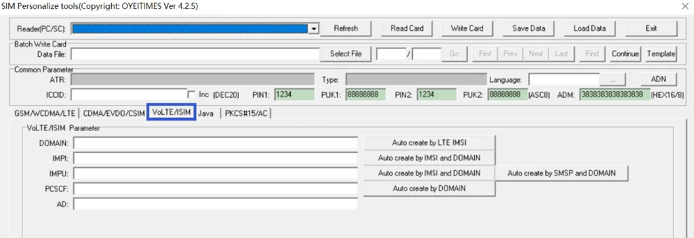 Характеристики: может быть написан ICCID, домен, IMPI,IMPU,PCSCF,AD и так далее