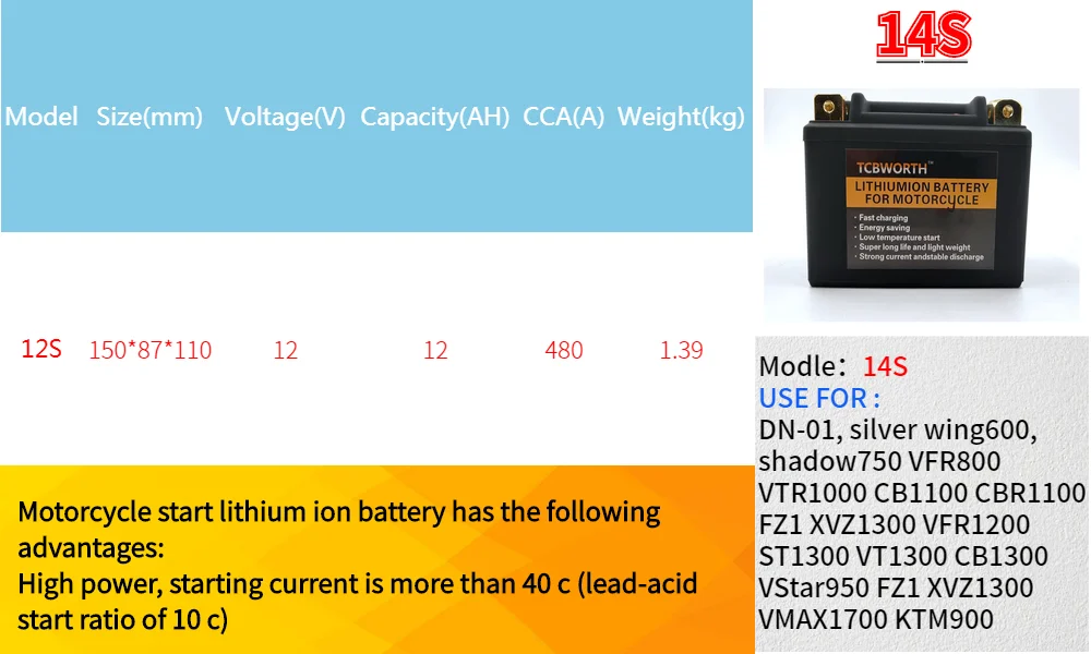 TCBWORTH 12V LiFePO4 мотоциклетный стартер Батарея