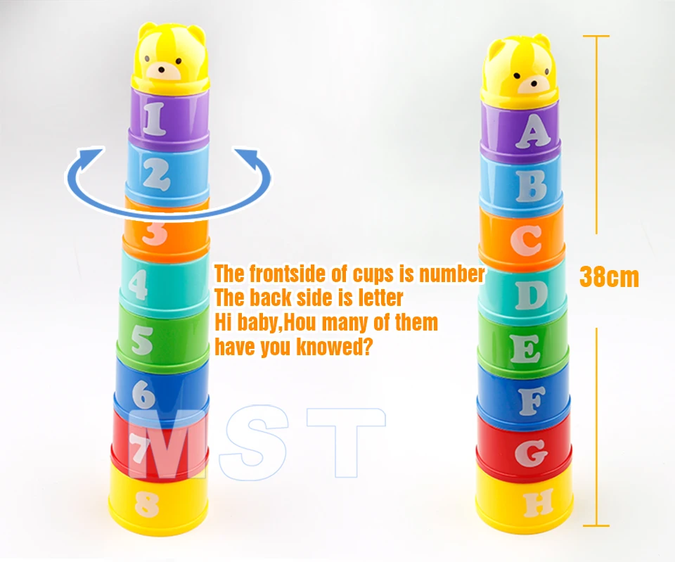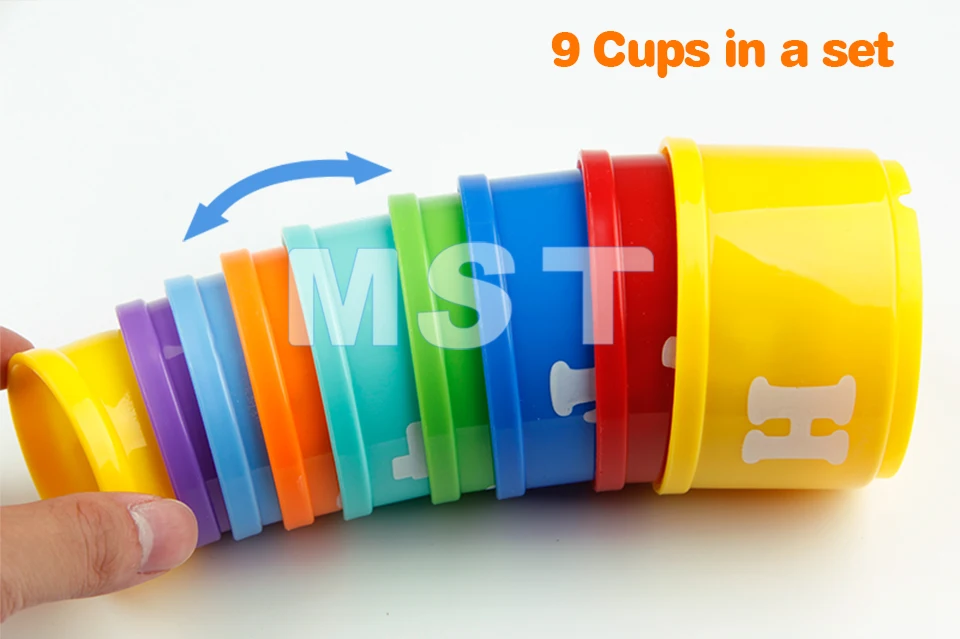 1. Этот набор чашек изготовлен из высококачественных материалов, которые были протестированы для безопасности. 2. Это может изменить сложенные чашки по желанию, чтобы тренировать способность ребенка работать. 3. Чашка печатается с цифрами и буквами. 4. Несколько способов игры! Дети любят группировать их вместе, складывать их, строить башни, вставлять вещи, поворачивать их и скрывать под ними.