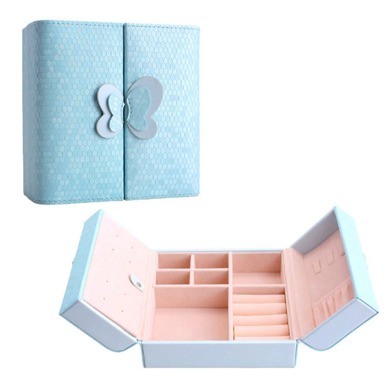 Women's Travel Jewelry Case Box Portable Organizer Charm Unique Butterfly Design Condition :100% brand new Material:pu leather,wood,cardboard,flannel Main Color:Blue White Pink Size:15*15*6.5cm Package includes 1pc jewelry box