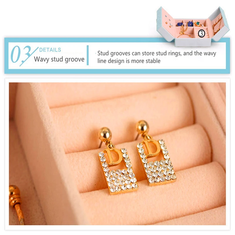 Jewelry Box Storage Organizer Case Ring Earring Necklace PU Leather Ornaments Case Portable Display Storage Charme Box Organiser