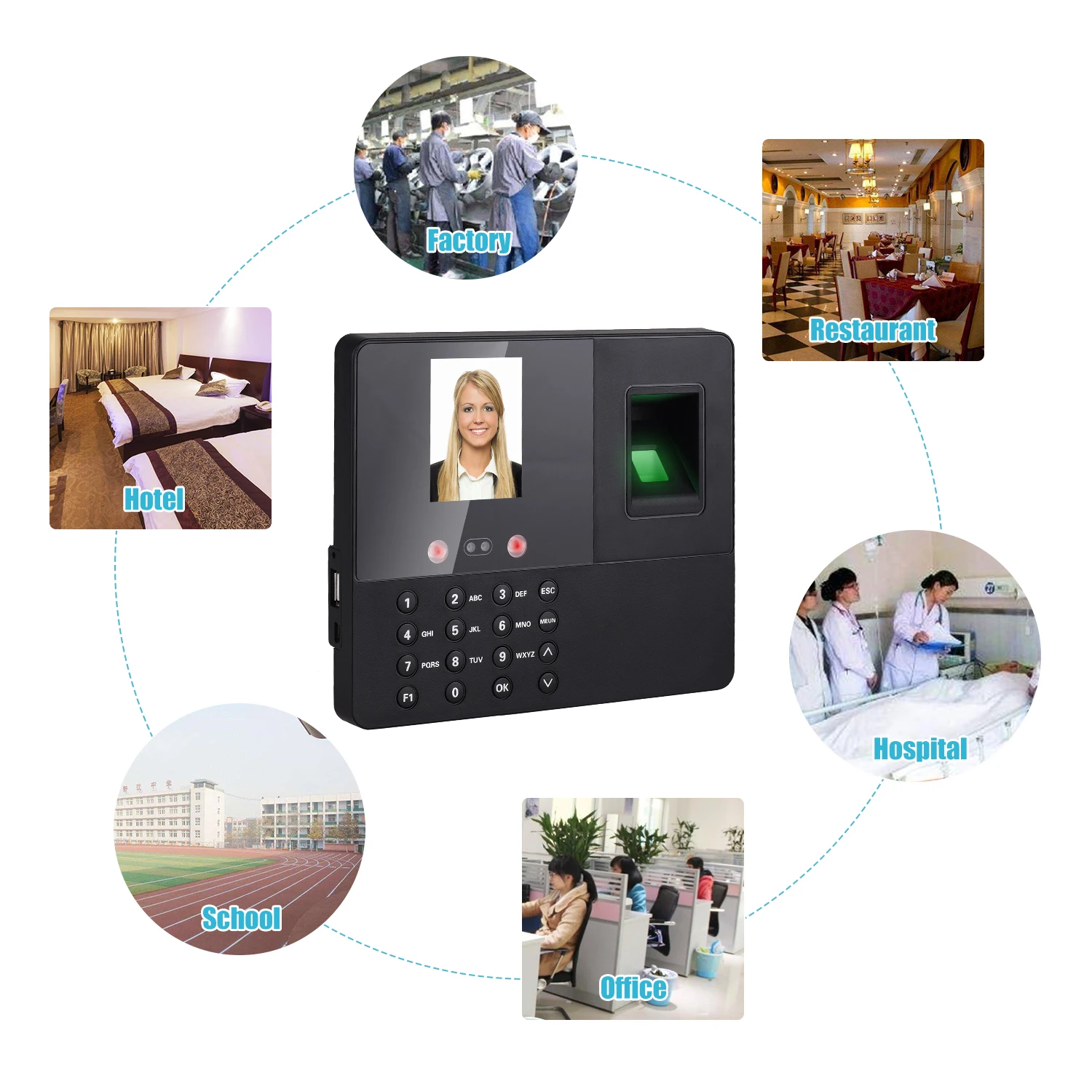 Не требуется программное обеспечение и интерфейс USB диска: не нужно устанавливать программное обеспечение, простая в эксплуатации машина посещаемости. Можно использовать usb-диск для прямой загрузки отчетов о посещаемости.