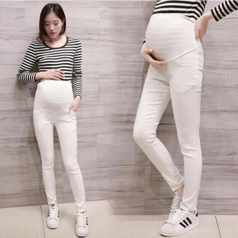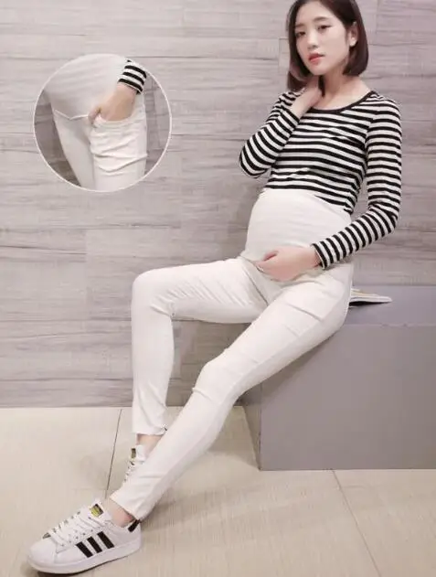 Весенние Брюки для беременных осенние женские белые узкие брюки с высокой талией и карманами Леггинсы для беременных