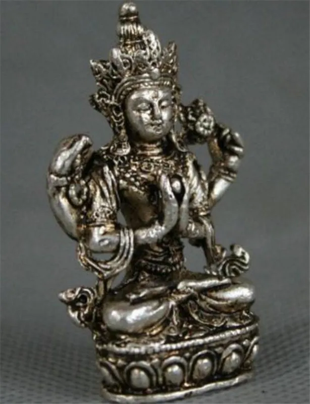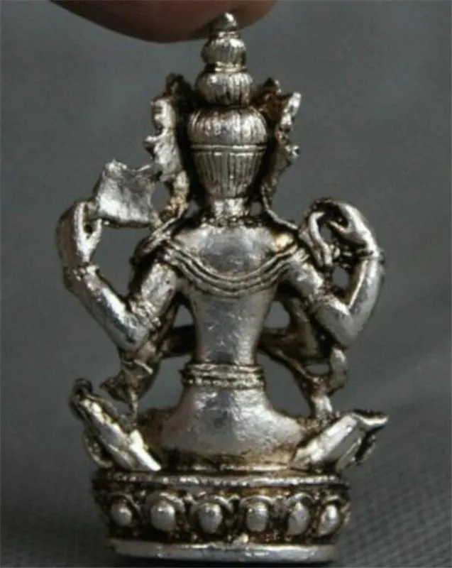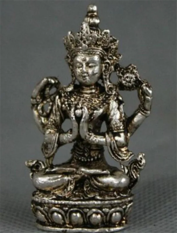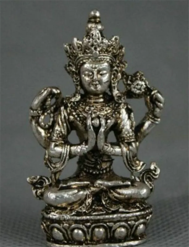 Отзывы о YM медная статуя Тибетский буддизм Мяо Серебряное сиденье 4 руки Chenrezig Будда