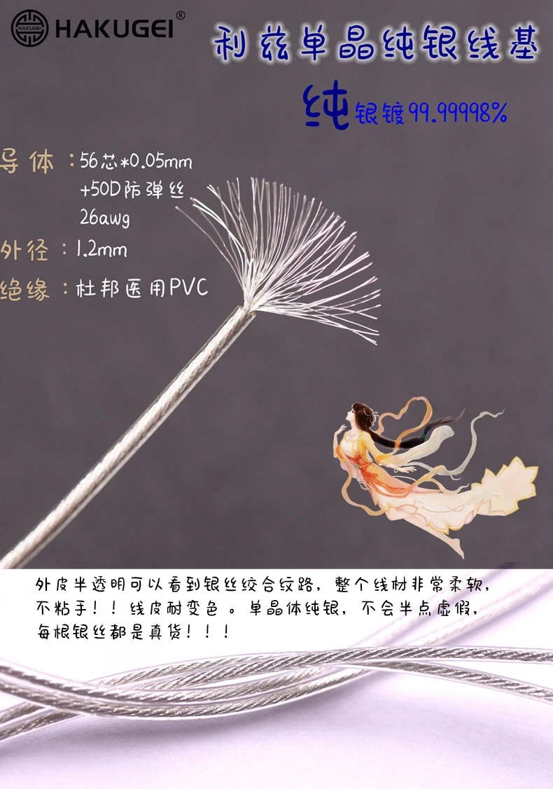 Отзывы о Монокристаллический кабель для наушников litz из стерлингового серебра 56 жил * 0 05