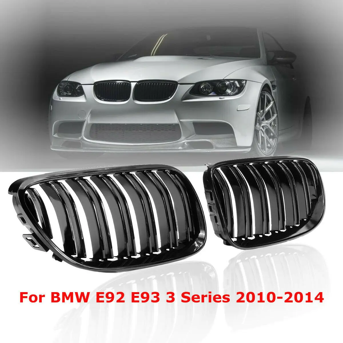 2х глянцевый черный Передний гриль для почек, решетки с двумя линиями для BMW E92 E93 328i 335i 2010 2011 2012 2013 2014 передние гоночные грилиОсобенности: