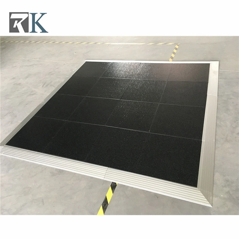 Пластиковый танцевальный пол RK с поверхностью из ПВХ, черный, белый и деревянный. Широко используется для мероприятий, вечерние мероприятия, свадьбы, любых внутренних или наружных дверей. Напольная панель с блокированной системой, без отверстий или швов на поверхности. Легко устанавливается одновременно. Например, напольное покрытие для танцев, 5 м * 5 м, может быть изготовлено в течение 15 минут. Поверхность из ПВХ водостойкая и огнестойкая. Это идеальная идея для использования в помещении и на улице, вечерние. Большинство специально по Танцы настил система запирания дверей. Разъем может быть закреплен на обратной стороны панели. Экономит больше места для хранения. Край напольного покрытия: светильник, не скользящий алюминиевый пандус.