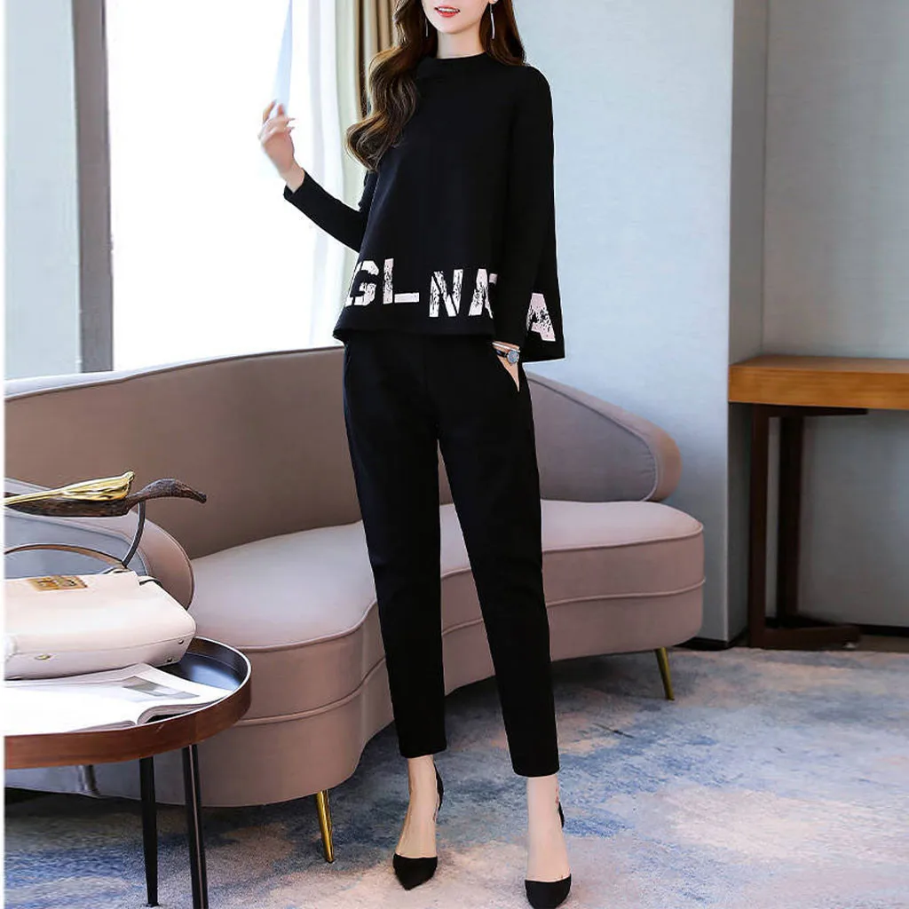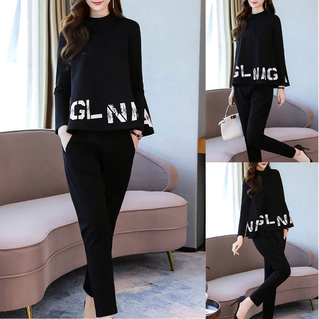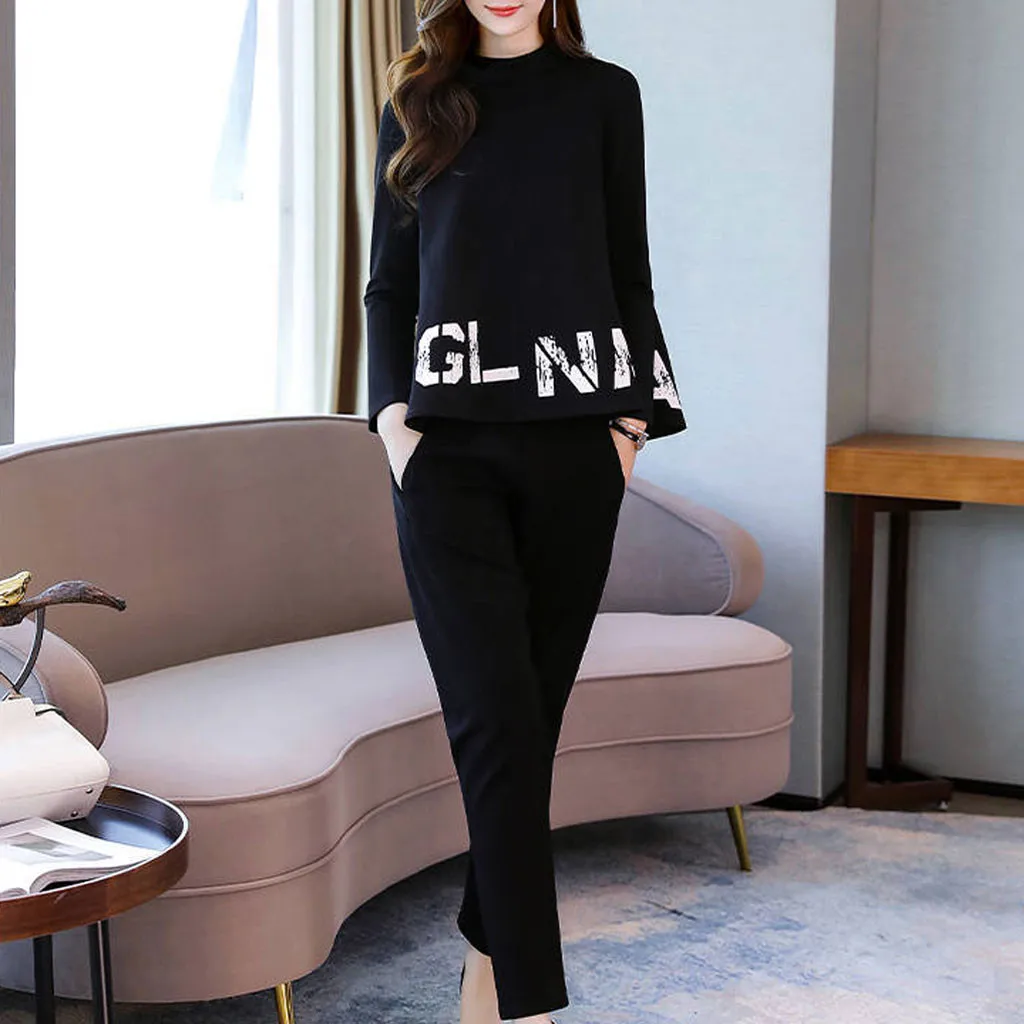 Модный женский повседневный комплект с длинными рукавами и карманами и длинными штанами