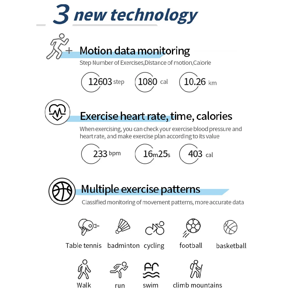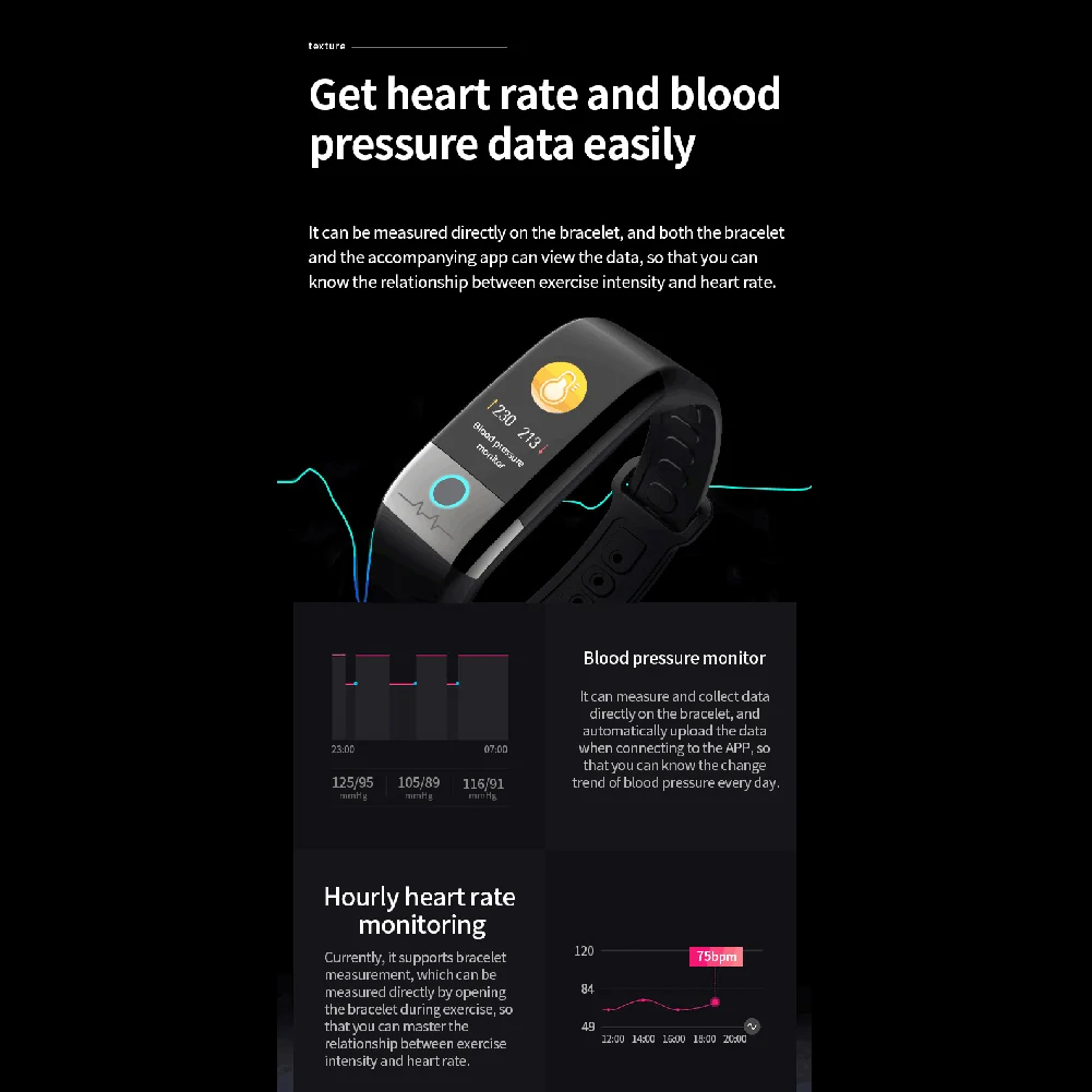 * 4.фитнес-трекер использует сверхмощный датчик частоты сердечных сокращений и контролирует частоту сердечных сокращений 24 часа в режиме реального времени.