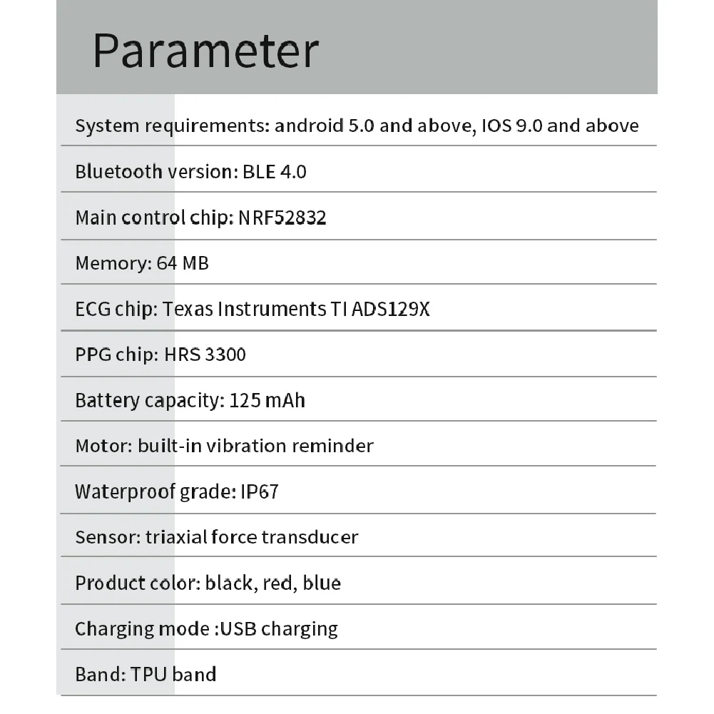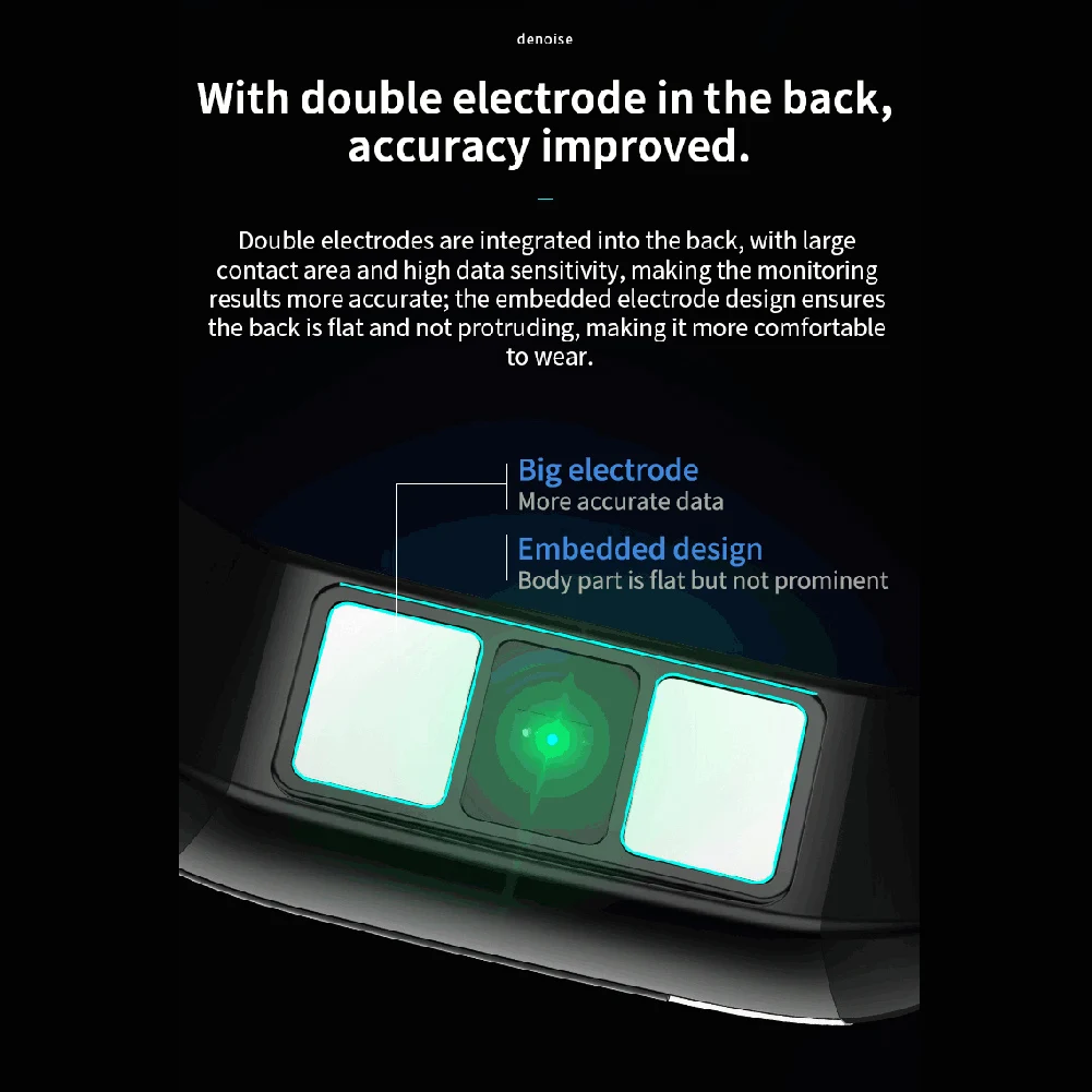 * 2. двойные электроды интегрированы в заднюю часть, с большой контактной областью и высокой чувствительностью данных, что делает результаты мониторинга более точными; конструкция встроенного электрода гарантирует, что задняя часть плоская и не выступающая, удобнее носить.