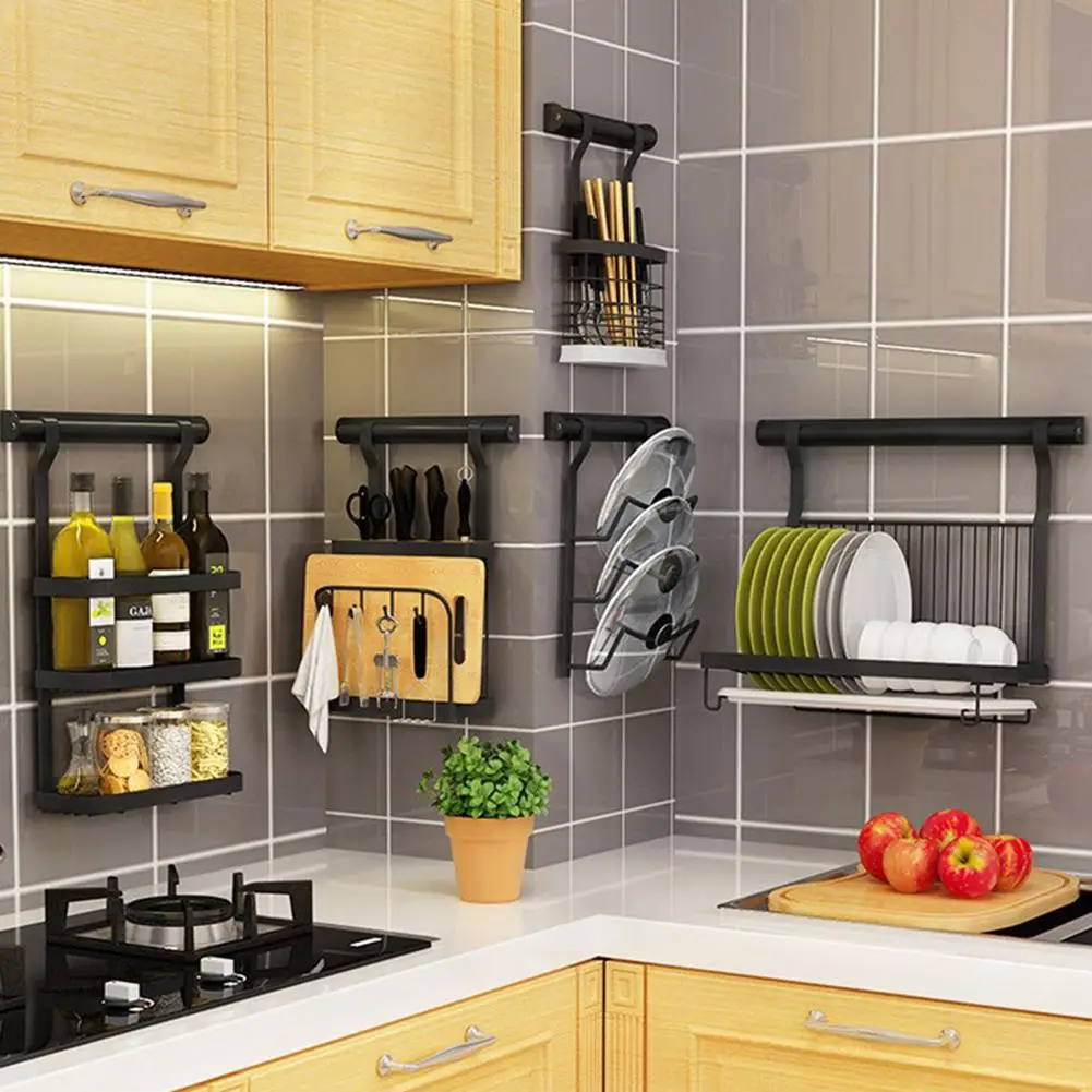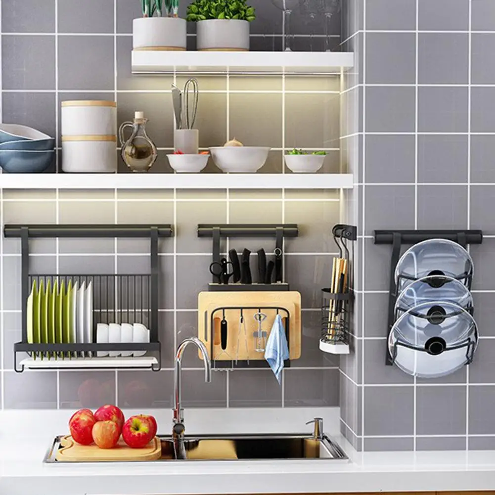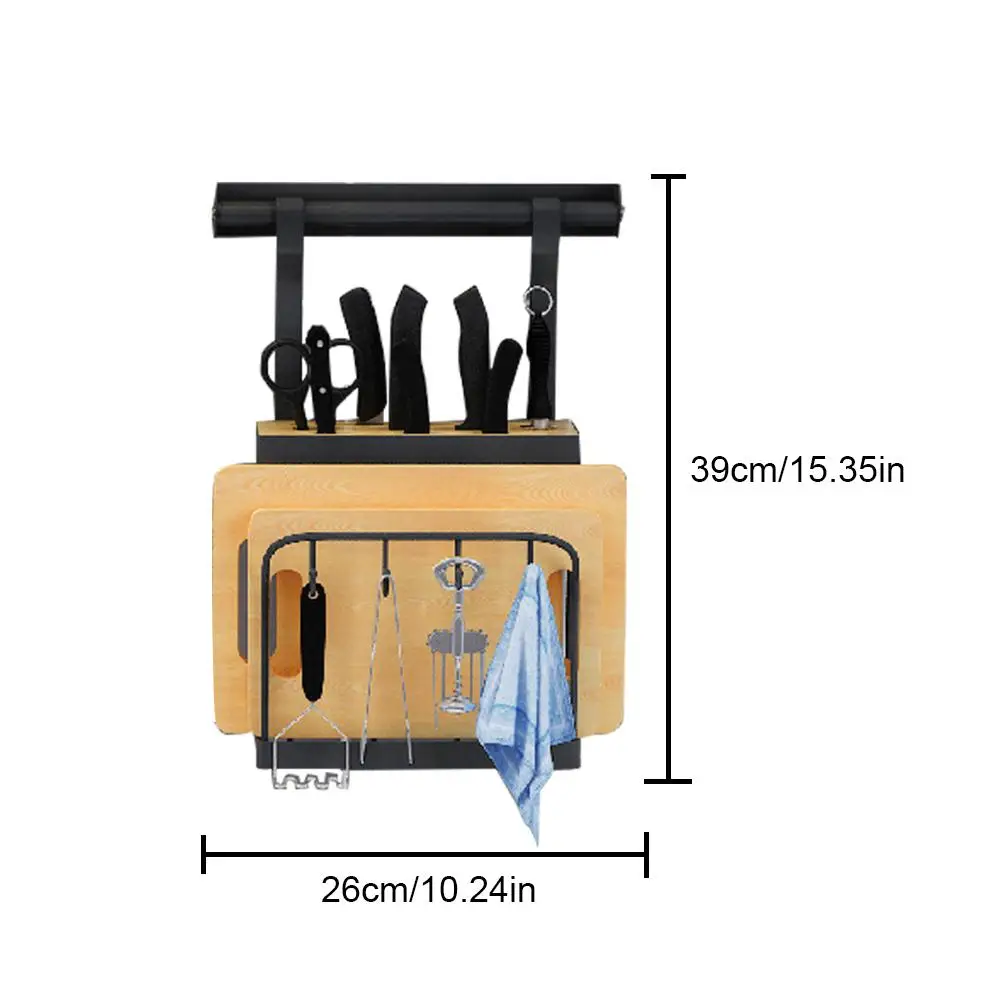С восьми отверстиями для ножниц, фруктовых ножей и т. Д. С четырьмя крючками. С разделочной доской для хранения.