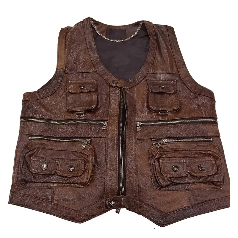 Отзывы о Мужской жилет из натуральной бычьей кожи коричневый мотоциклетный без рукавов с