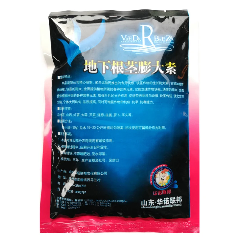 Он специально используется для расширения роста клубней и клубней, что может ускорить расширение клубней, всесторонне обеспечить все виды питательных веществ, необходимых растениям, улучшить фотосинтез листьев, способствует передаче питательных веществ корням и клубням и ускоряет их развитие. Люди большие и однородные, и качество улучшено, и в то же время, способность культур противостоять болезням, ЗАСУХУ И холоду может быть усилена. Область применения: картофель, яма, сладкий картофель, чеснок, спаржа, лук, имбирь, редис, таро и другие клубни и корневые культуры. Способ использования: небольшой мешок с 15-20 кг воды, равномерный спрей, может использоваться в течение периода роста, примерно один раз каждые 20-30 дней Каждая посылка содержит: 6 пакетов по 30 граммов.