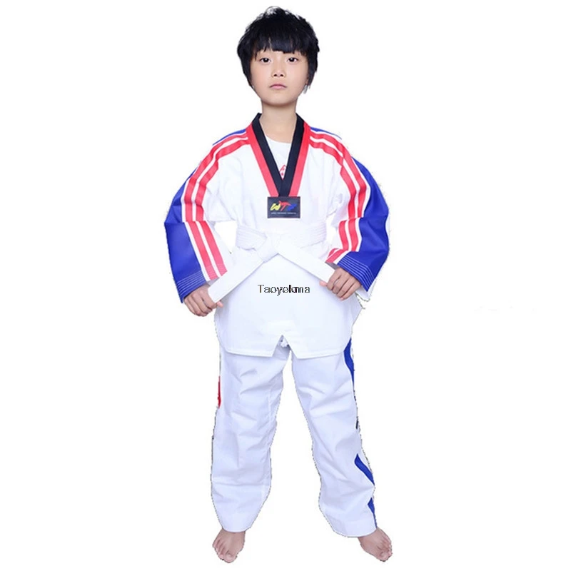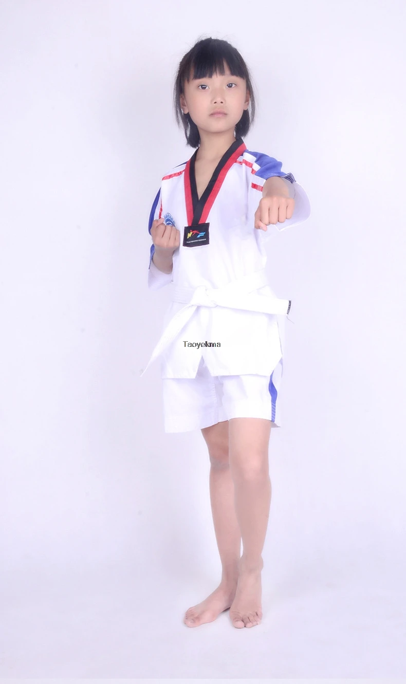 Униформа для взрослых и детей каратэ, тренировочная одежда для тхэквондо, для мужчин и женщин, длинные и короткие рукава, костюмы для тхэквондо T157Дополнительное описание