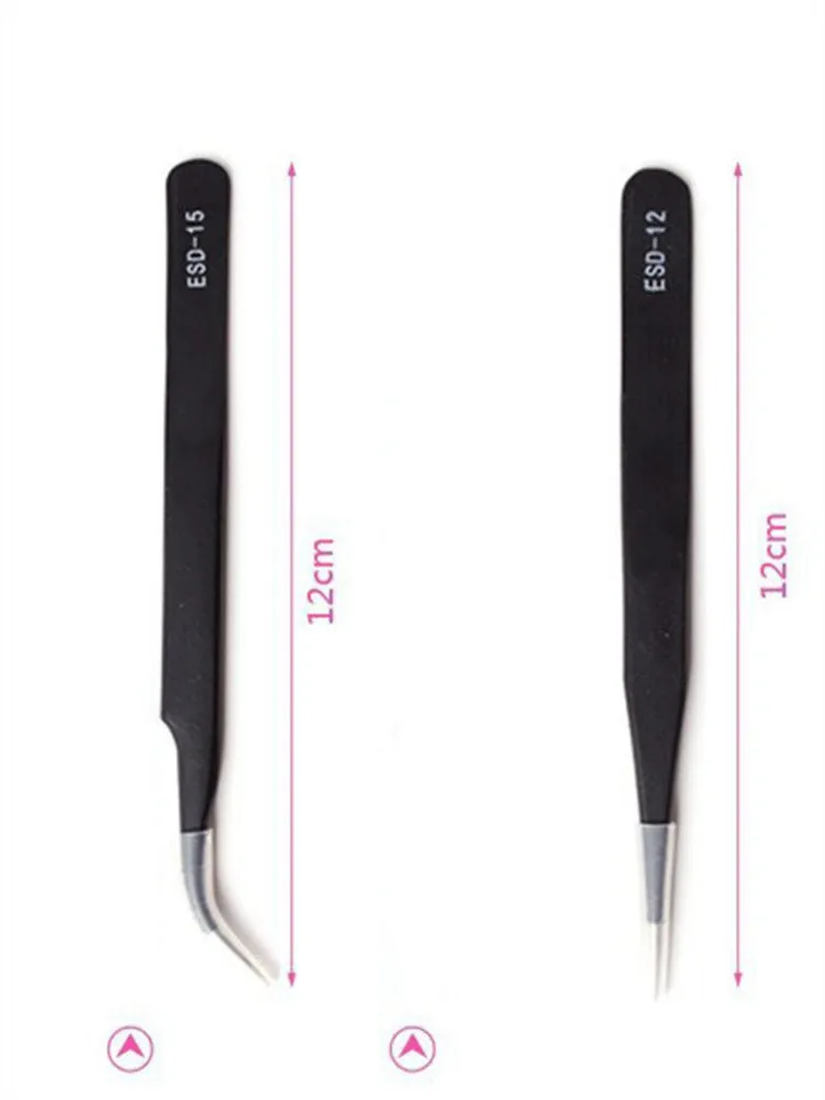 Color: Black Package List:1 PC Stright and 1 PC Curve tweezers Material: Stainless Steel Length: 12 cm