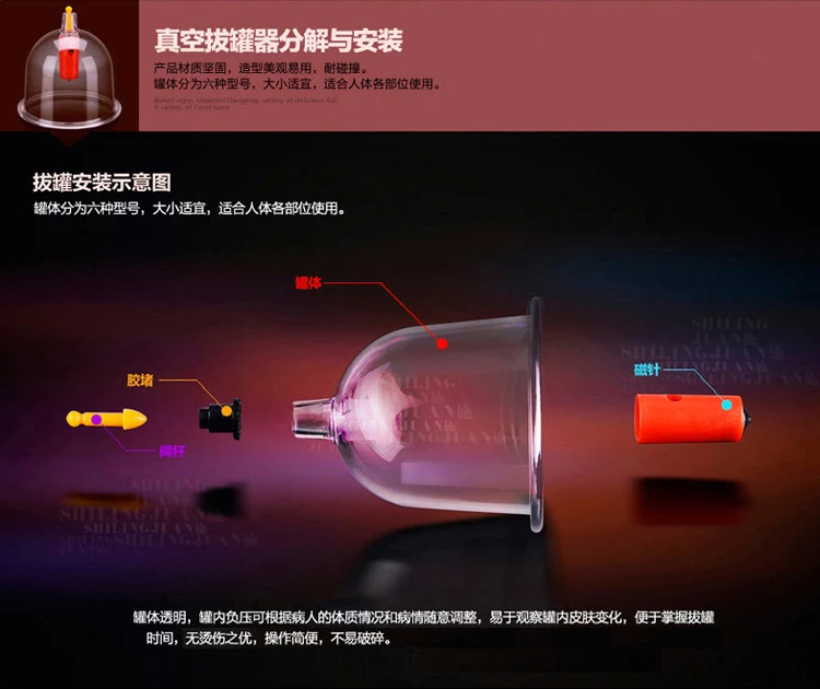 Характеристики: Название: Набор вакуумных чашек 32 шт. Материал: экологически чистый пластик Детали: вакуумный пистолет 1 шт. + вакуумные чашки 32 шт. + удлинительная трубка 1 шт. + руководство по эксплуатации 1 шт. Функции: детоксикация, улучшение состояния здоровья, потеря веса. И т. д .. Пользователи: беременным женщинам и детям запрещено. Хорошие подарки для родителей, родителей и друзей. Особенности: 1. Привлекательный дизайн и прочный, прочный и ударопрочный материал. 2. Прозрачный корпус: легко регулировать внутреннее давление, и внутренняя обработка может быть четко видна. 3. Безопасное и хорошее уплотнение: Гладкий край дуговой чашки увеличивает площадь, соединяющую с кожей, что подтверждает лучшее уплотнение. 4. 7 размер чашки подходит для всех частей тела.5. Простота в эксплуатации: огонь и электричество не требуются, безопасны и надежны, просты в эксплуатации.
