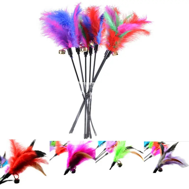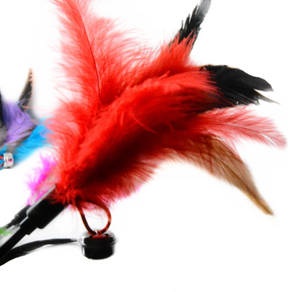 Отзывы о 1 шт. Новые многоцветные Кот Дразнилка для котенка забавные перо индейки колокол