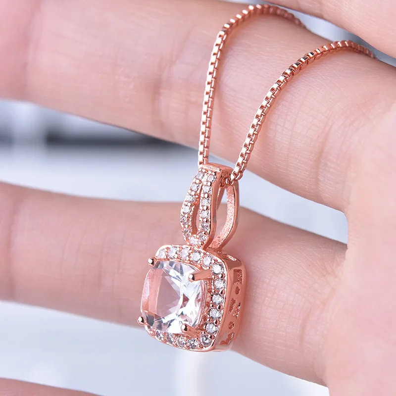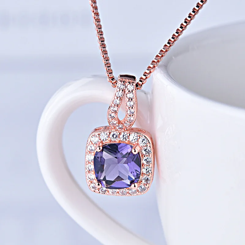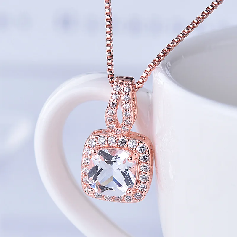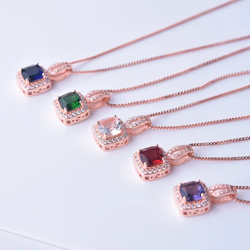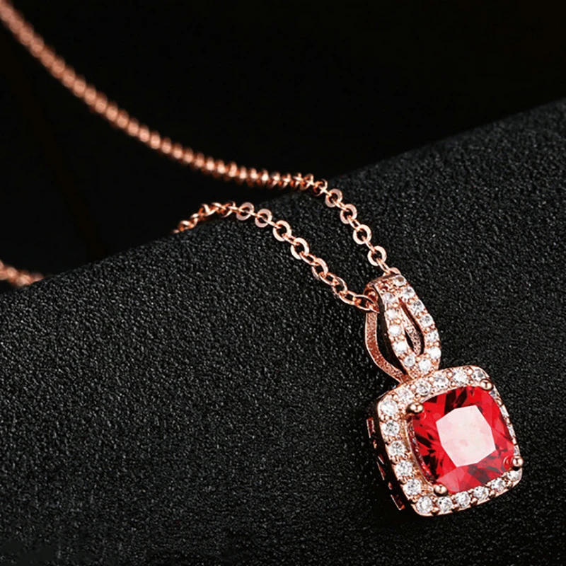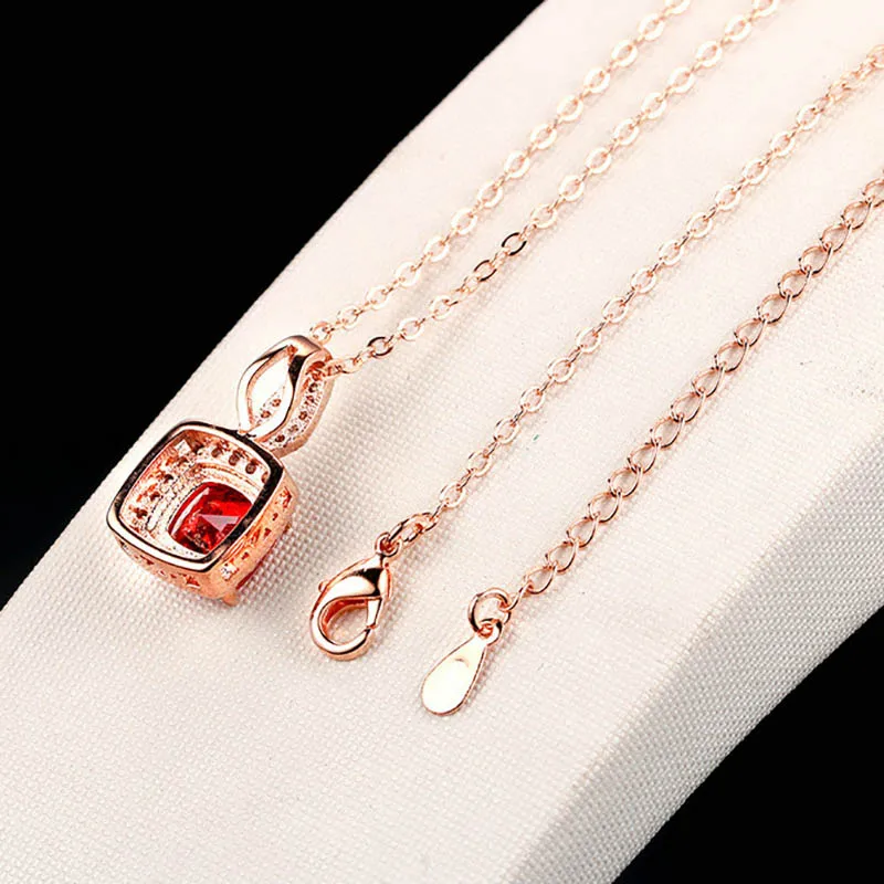 JoiasHome, классическое ожерелье из стерлингового серебра 925 пробы, подвеска из розового золота с квадратным Рубином, женский подарок на ужин с удлинителем 46 см + 5 см
