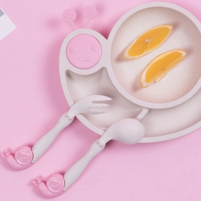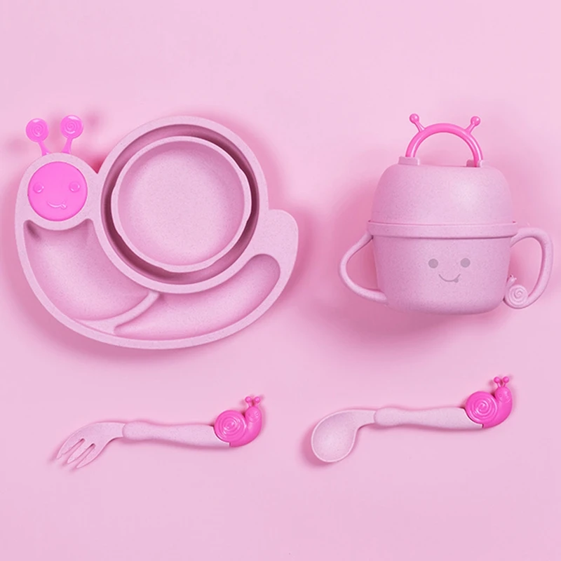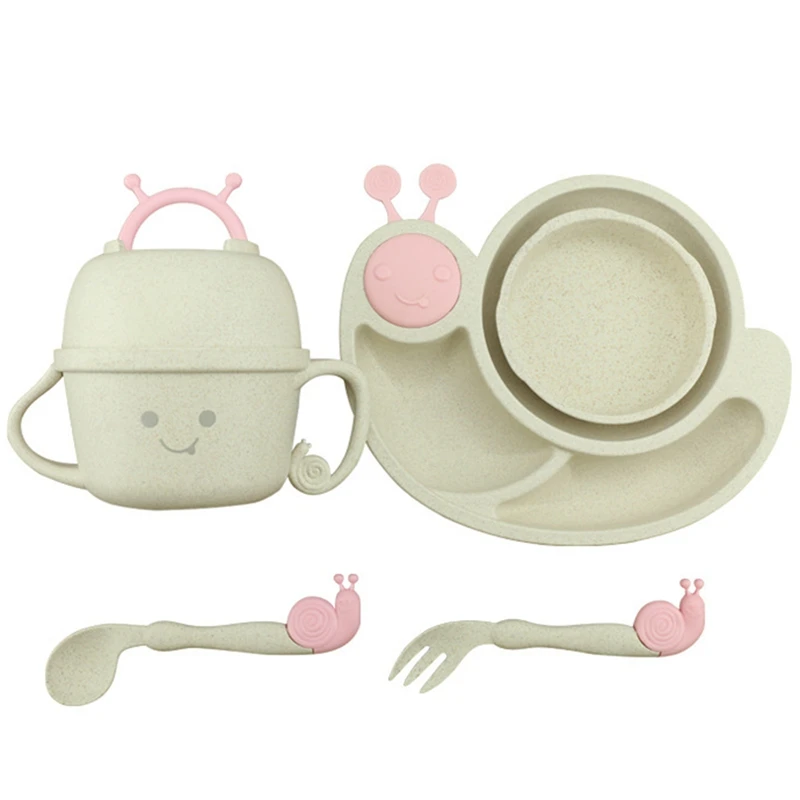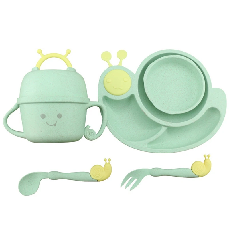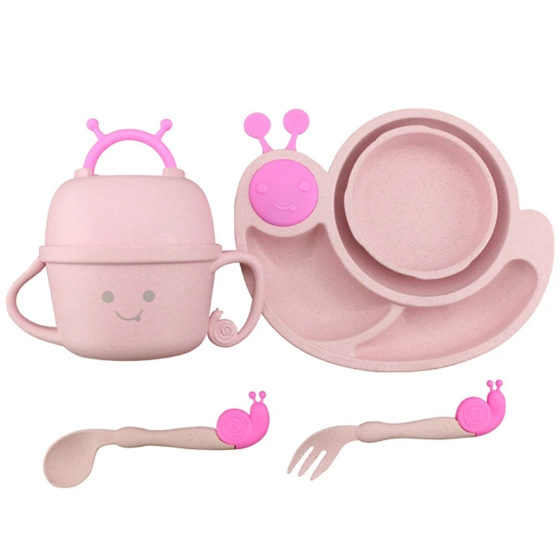 Отзывы о 6Pcs/Sets Cartoon Snail Feeding Dish Baby Bowl with Spoon Fork Food Tableware Kids Training Dishes Container | Дом и сад