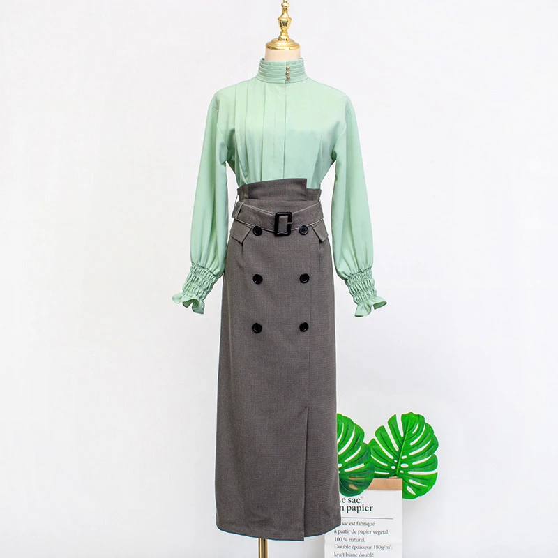 Отзывы о Зеленая рубашка на пуговицах юбка с завышенной талией для женщин женские топы