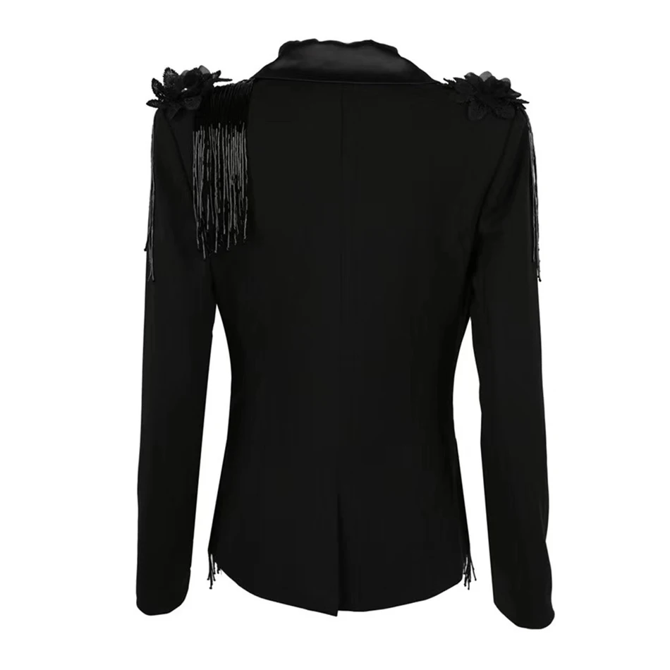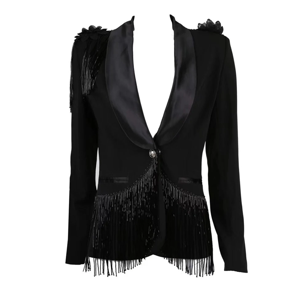 Отзывы о Новинка весны 2020 женский черный пиджак с бахромой костюм сексуальный отворотом