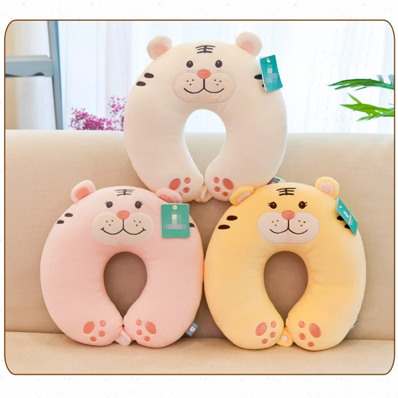 Милые u-образные подушки для шеи с изображением животных; удобные детские подушки для путешествий и шеи; мягкие подушки с изображением тигра из мультфильма; подарки для детей