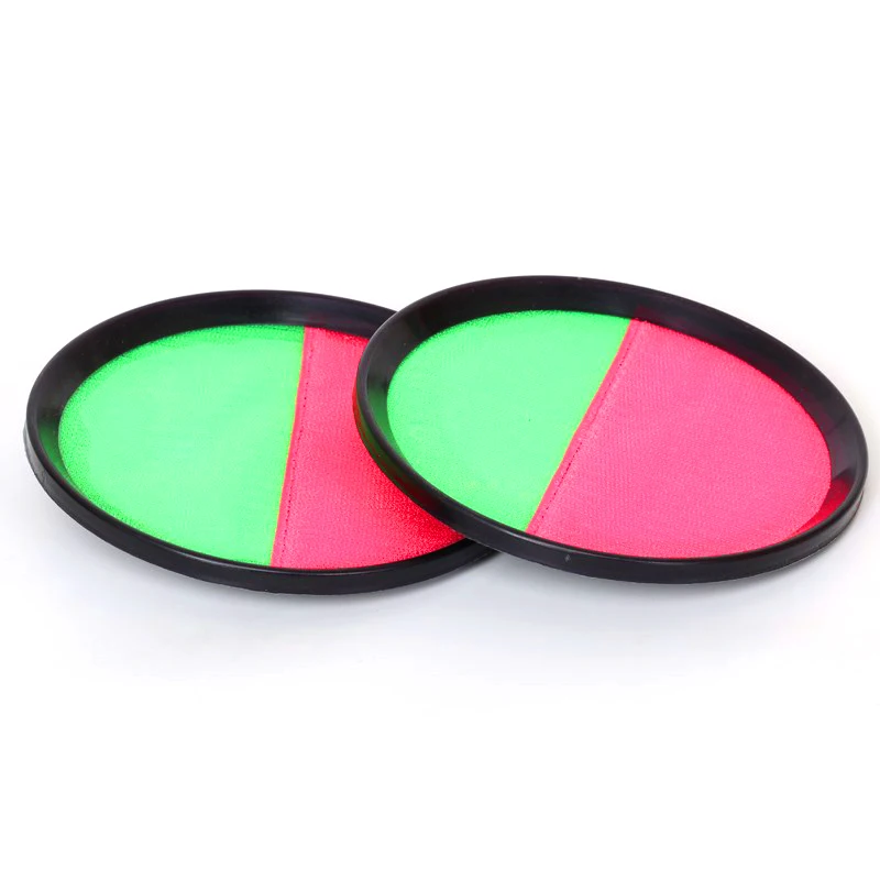 Передняя часть ракетки-это кусок волшебной ткани с крючками, которая может захватывать мяч, который летит быстро. Задняя часть ракетки имеет ремешок с пряжкой, который можно регулировать по размеру, чтобы держать ладонь.