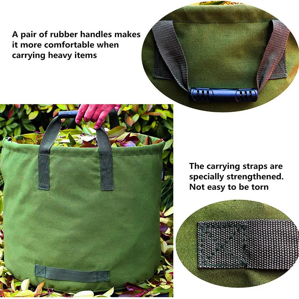2. Высококачественный Материал: изготовлен из водонепроницаемой ткани Оксфорд 600D, с водонепроницаемым покрытием садового мешка, он может противостоять давлению высокой интенсивности. Прочные ручки усилены двойными сшитыми косами, чтобы легко обрабатывать большое количество светильник и садовые отходы среднего веса. Вы можете использовать его как мешок для газона, мешок для листьев или многоразовый мусорный мешок для сада. Он может выдерживать эти тяжелые нагрузки.