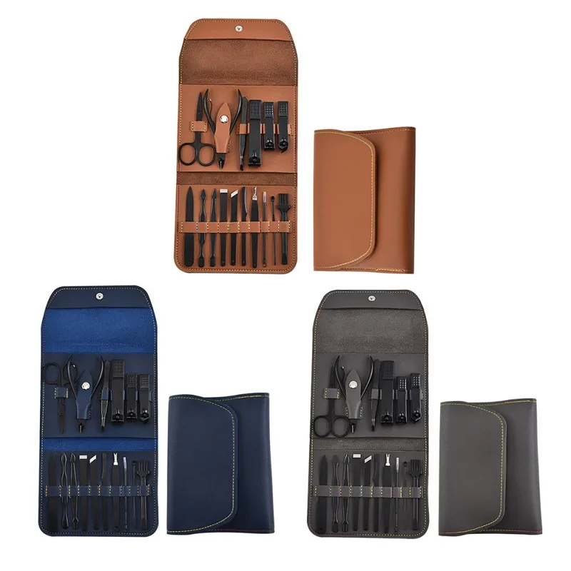16pcs/set Folding Bag Nail Clipper Set Stainless Steel Nail Cutter Tool Set FingerNail Cutter Scissors Nail Trimmer Kit