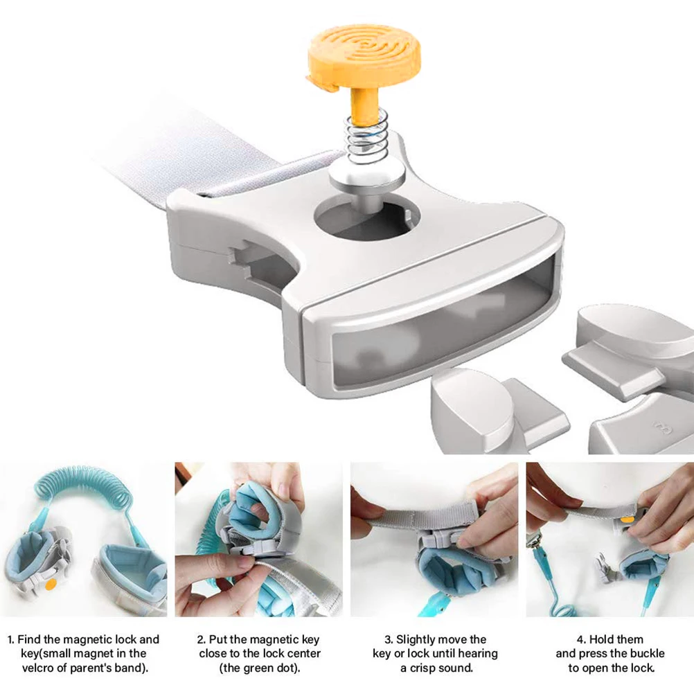 Пояс против потери: вы даже можете подключить ремни для маленьких детей к коляске, рюкзаку или руке; Идеально подходит для супермаркетов, парков, торговых центров, портов и оживленных мест.Магнитный индукционный замок: Этот анти-потерянный браслет предназначен с Индукционным замком, не дает ребенку открыть замок самостоятельно. Безопасно и удобно.