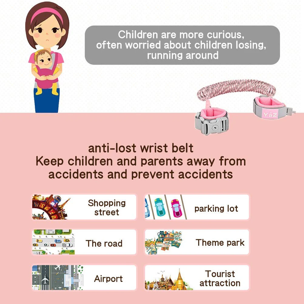Безопасный инструмент: дополнительная функция замка безопасности, подходит для шоппинга, многоузких улиц, поездов, метро и других мероприятий, чтобы предотвратить потери детей в местах общественного пользования и избежать несчастных случаев.Ремешок для защиты от потери: Прикрепите наручный ремешок к рук взрослых и детей, чтобы обеспечить безопасность ребенка. Ремень может быть расширен до 2 м/6,6 футов, не мешая детям играть (подходит для 1-12 лет).