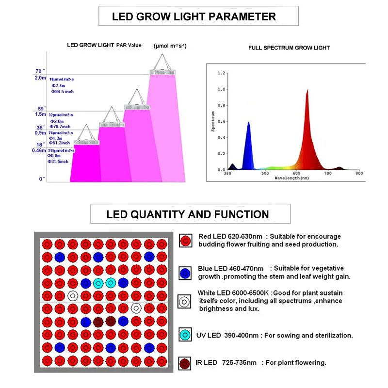 【Профессиональный полный спектр】 Предназначен для комнатных растений светильник для выращивания рассады оснащен 5 лампами с различными длинами волн (84 красных + 10 синих + 2 УФ + 2 ИК + 2 белых), обеспечивает идеальную длину волны для всех стадий роста, идеально подходит для посева, прорастания, растительного и суккулента. 【Легко настроить 】Обновленный ручной набор значительно упрощает сборку светильник льника для роста. Корпус из АБС-пластика, отличный контроль тепла, светодиодные чипы помогают вашим растениям расти лучше.( Яркость нашего продукта равна 1000 Вт HPS/MH, Это энергосбережение, чем у традиционных HPS,Фактическая Потребляемая мощность 60-80 Вт) 【Широкое использование 】Растсветильник используется для как гидропоника, так и комнатные растения в почве, такие как травы, орхидеи, перец, картофель, салат, Чили, помидоры, аквариумные растения, такие как водоросли в теплице, саду, вертикальной ферме, растущая палатка или комната для выращивания. 【С подарком 】Изделие будет бесплатно оснащено регулируемой веревкой, она может отрегулировать высоту светсветильник льника для ваших растений