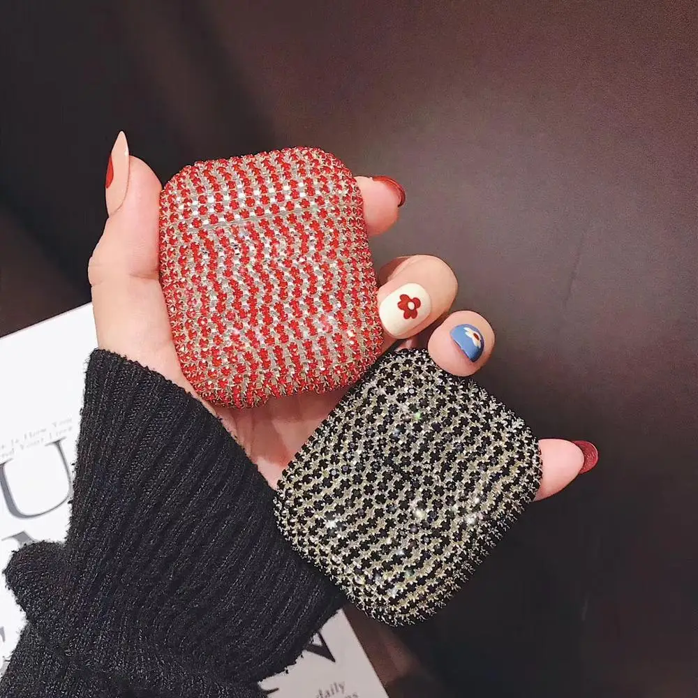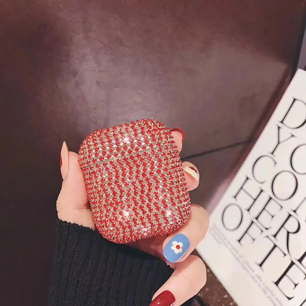 Блестящий бриллиантовый чехол для Airpods 2 1 крышка Беспроводной Bluetooth наушники роскошный украшенный алмазами девичий чехол для переноски 1 2 Fundas зарядным устройством