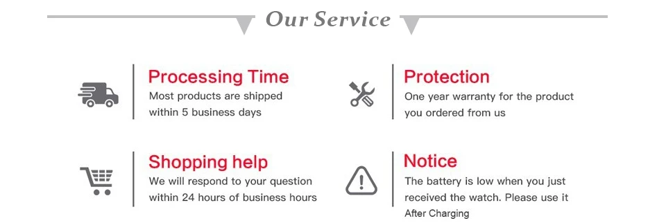 1. Если продукт не будет использован, не волнуйтесь, пожалуйста, свяжитесь с нами, мы поможем вам решить проблему. Из-за разницы во времени, мы обычно отвечаем в течение 24 часов, за исключением праздников. 2. Один год гарантии на товар, который вы заказали у нас! 3. мы не можем предложить гарантийное обслуживание для продуктов, которые имеют ручной ущерб, включая, но не ограничиваясь: натолкнутый на пользователя/падение в воду с помощью пользователя/разборка с помощью пользователя/другие человеческие повреждения, обнаруженные в официальном сервисном центре. 4. Для возвращенного товара, пожалуйста, напишите свой номер заказа на бумаге и положите его в коробку. Сообщите нам номер отслеживания возврата и сайт отслеживания.