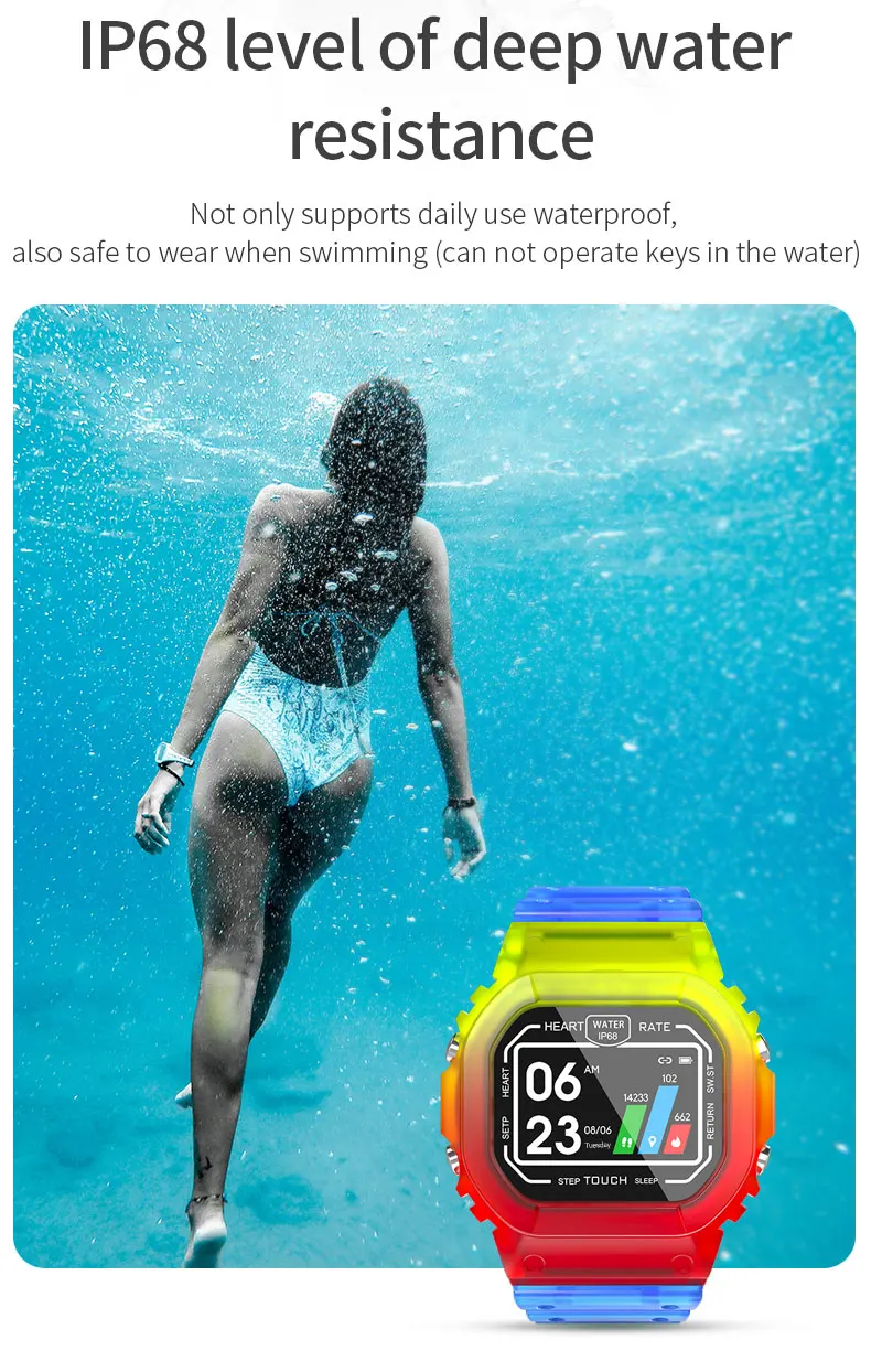 Обзор: материнская плата Это новейшие модные Смарт-часы с цветным экраном 1,14 ips. И спортивный дизайн с IP68 водонепроницаемый, вы можете носить его для плавания.
