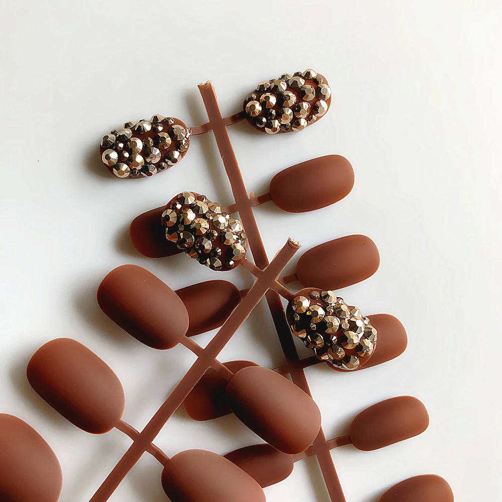 Отзывы о Накладные ногти 3D матовые короткие Овальные коричневые абрикосовые классные
