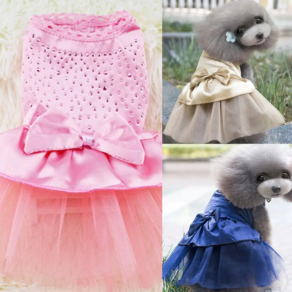 Отзывы о Практичное милое платье с бантом Стразы в 3 цветах для собак и щенков принцессы