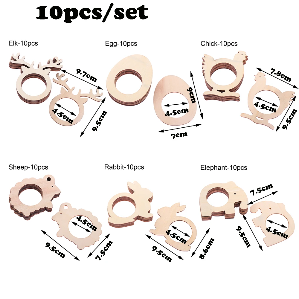 10 шт. деревенский деревянный кулон кольца для салфеток Пасхальный стиль лазерная резка дерево украшение стола Кухня Бар свадебные принадлежности DIY ремесла