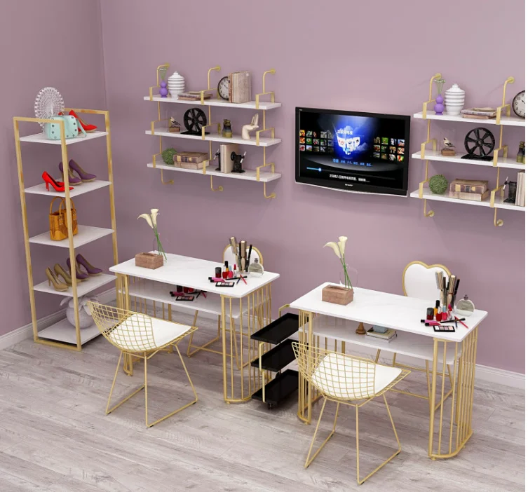 Отзывы о Маникюрный Стол и стул под мрамор золотого цвета одинарный двойной стол
