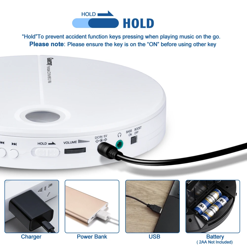 Портативный CD-плеер, ударопрочный компактный Hi-Fi музыкальный проигрыватель, CD-плеер с наушниками, CD-плеер, CD-плеер, Discman