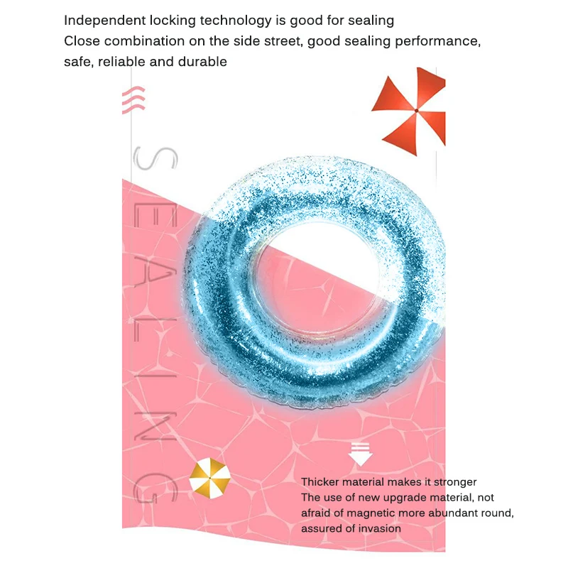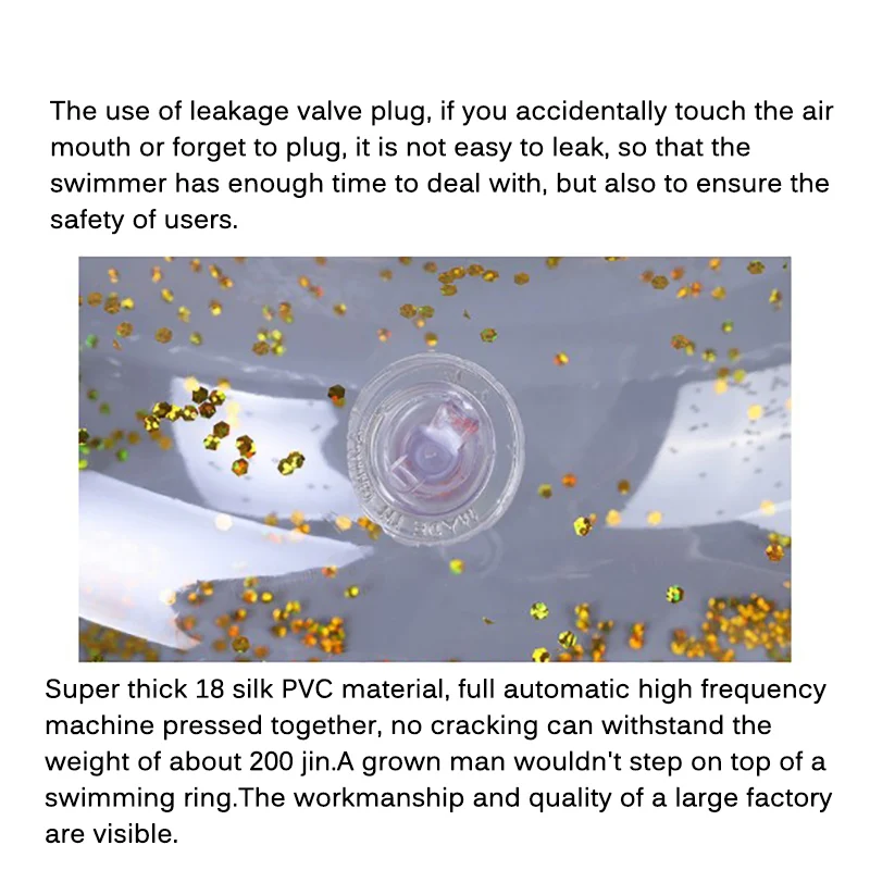 Круг для плавания, наполненный блестящими блестками, имеет красивый внешний вид, который является крутым и интересным и может эффективно привлечь внимание детей.