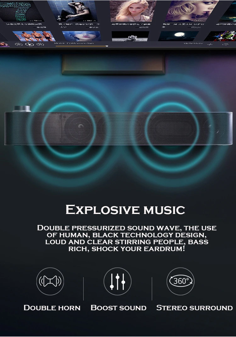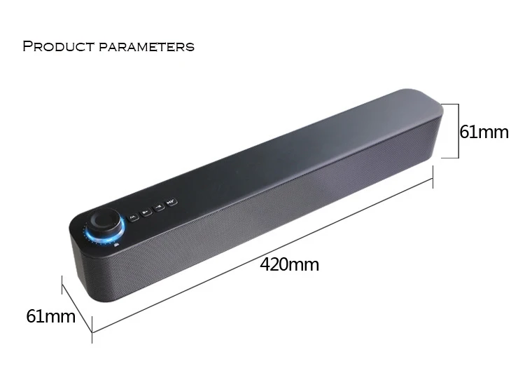 * Bluetooth 5,0 * Размер динамика: 420 мм * 60,5 мм * 61 мм * Динамик: 6 Вт * 2 * FM-радио: Встроенный * Разъем TWS: Поддержка * Мега бас, Вибрирующая пленка: высокое качество, мега бас Вибрационная пленка * 2 * Емкость аккумулятора: 1500 мАч * Порты: Micro USB, U-диск, TF-карта, AUX